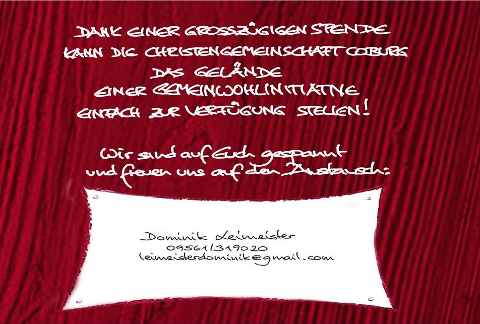 Dank einer großzügigen Spende verfügt die Christengemeinschaft Coburg über ein Grundstück, was diese gerne interessierten Personen zur Verfügung stellen möchte.