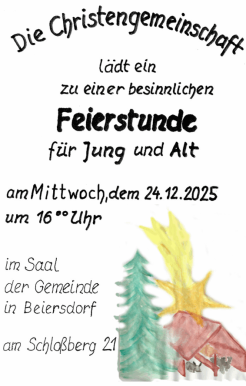 Die Menschenweihehandlung der Christengemeinschaft Coburg, findet Sonntag ab 10:00 Uhr statt.
