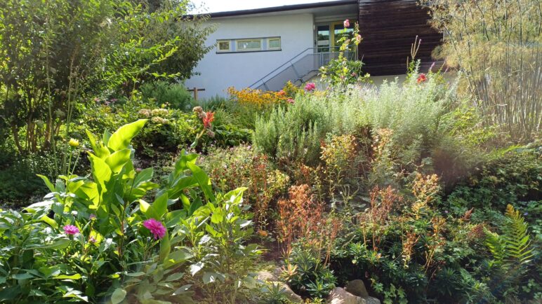 Wir haben bewusst auf diese Ordnung verzichtet, da wir Sie ja gerne auf die Suche schicken und auch den Garten nicht von Grund auf umgestalten wollten. Außerdem sind viele dieser Pflanzen im Hamburger Wetter nicht unbedingt winterhart und benötigen einen Standortwechsel für die kalte Jahreszeit, weshalb wir Sie in Pflanzgefäßen kultivieren.